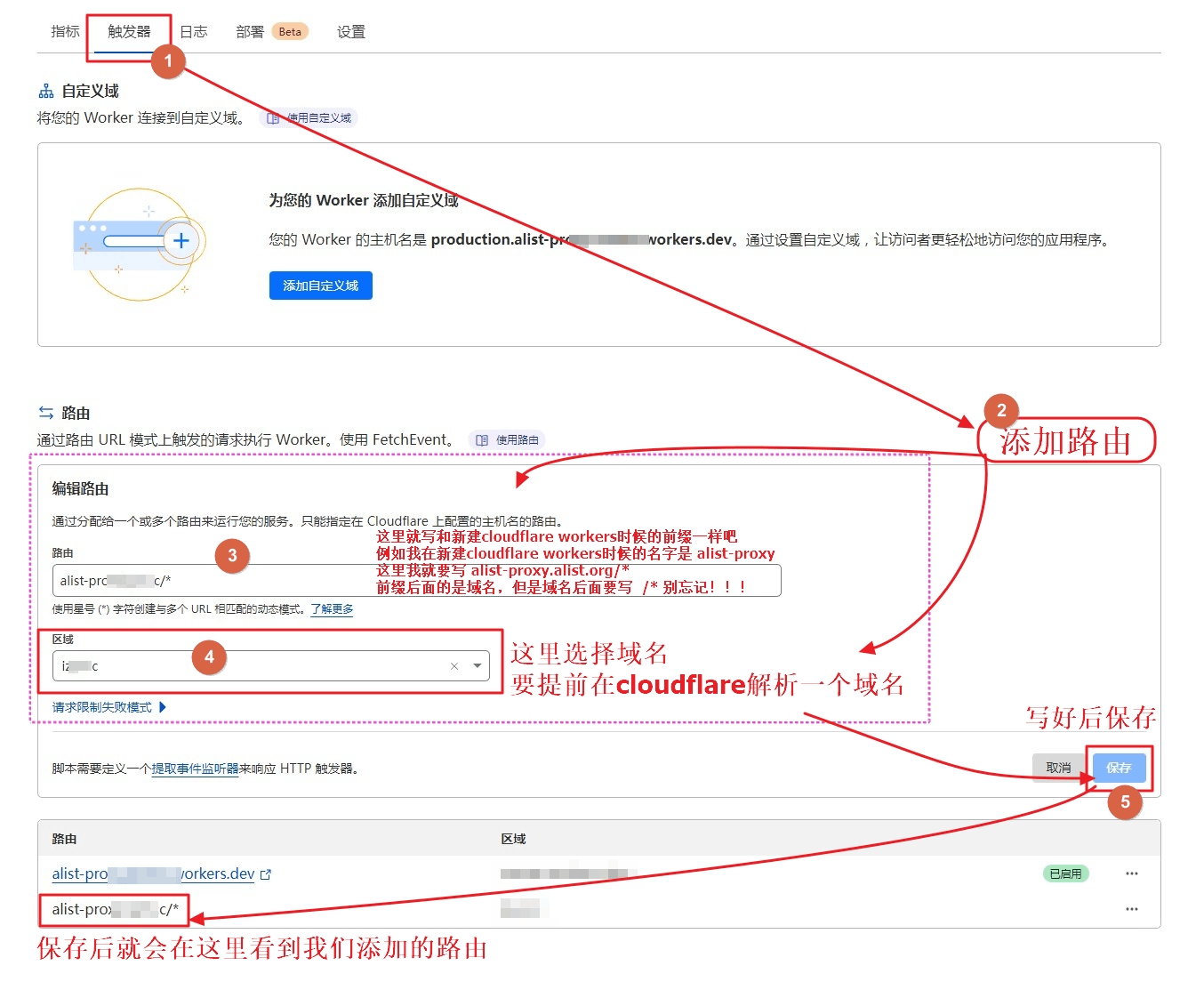 - 路由:为了方便区分我们也写和 Workers应用程序名一样的吧,alist-proxy.alist.org/*