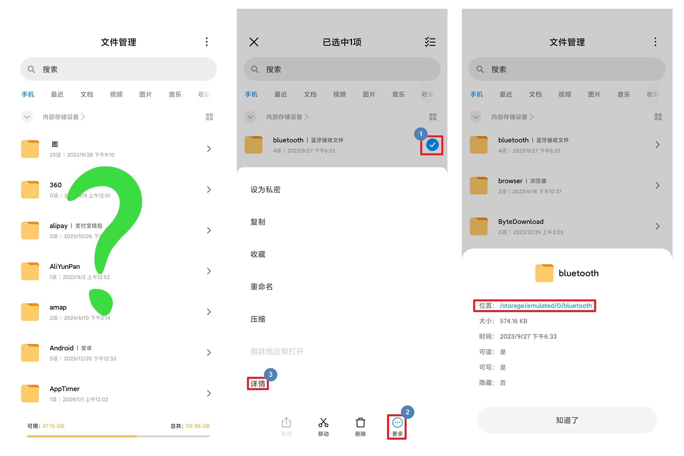 很简单,可以使用文件自带的文件管理(测试机是小米)、MIT管理器、ES文件管理器