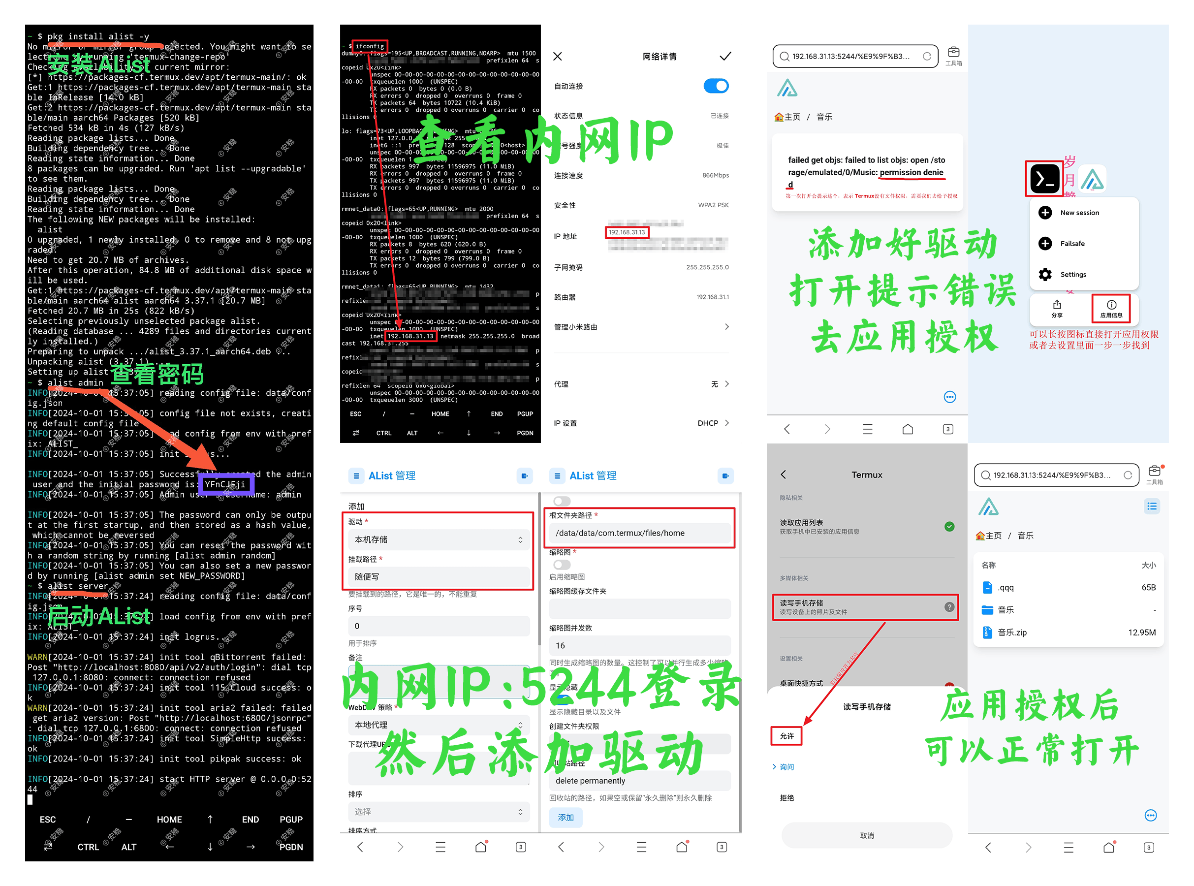 ./alist admin set NEW_PASSWORD然后查看一下手机的内网IP使用命令 ifconfig ,或者去WiFi查看